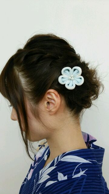 花飾りも浴衣の花と同系色でいいんじゃないでしょうか?(*´▽`*)
