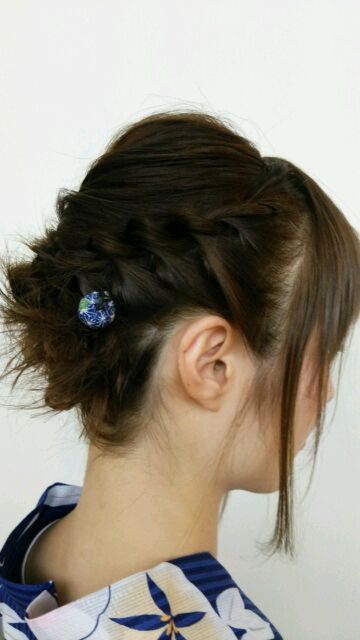 右側サイドには青のかんざし!!!(*´▽`*)こちらも浴衣の色に合わせて持って来てくれました!!!(*´▽`*)粋ですねえ……(`・ω・´)