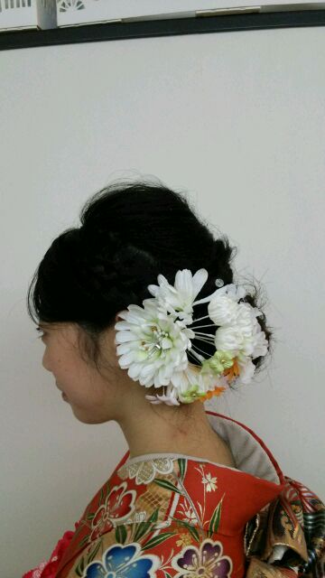 こちらはお花の様子(*´▽`*)このタイプのヘアスタイルには、こう言った大きめのお花がよく似あいます!!!(#^.^#)