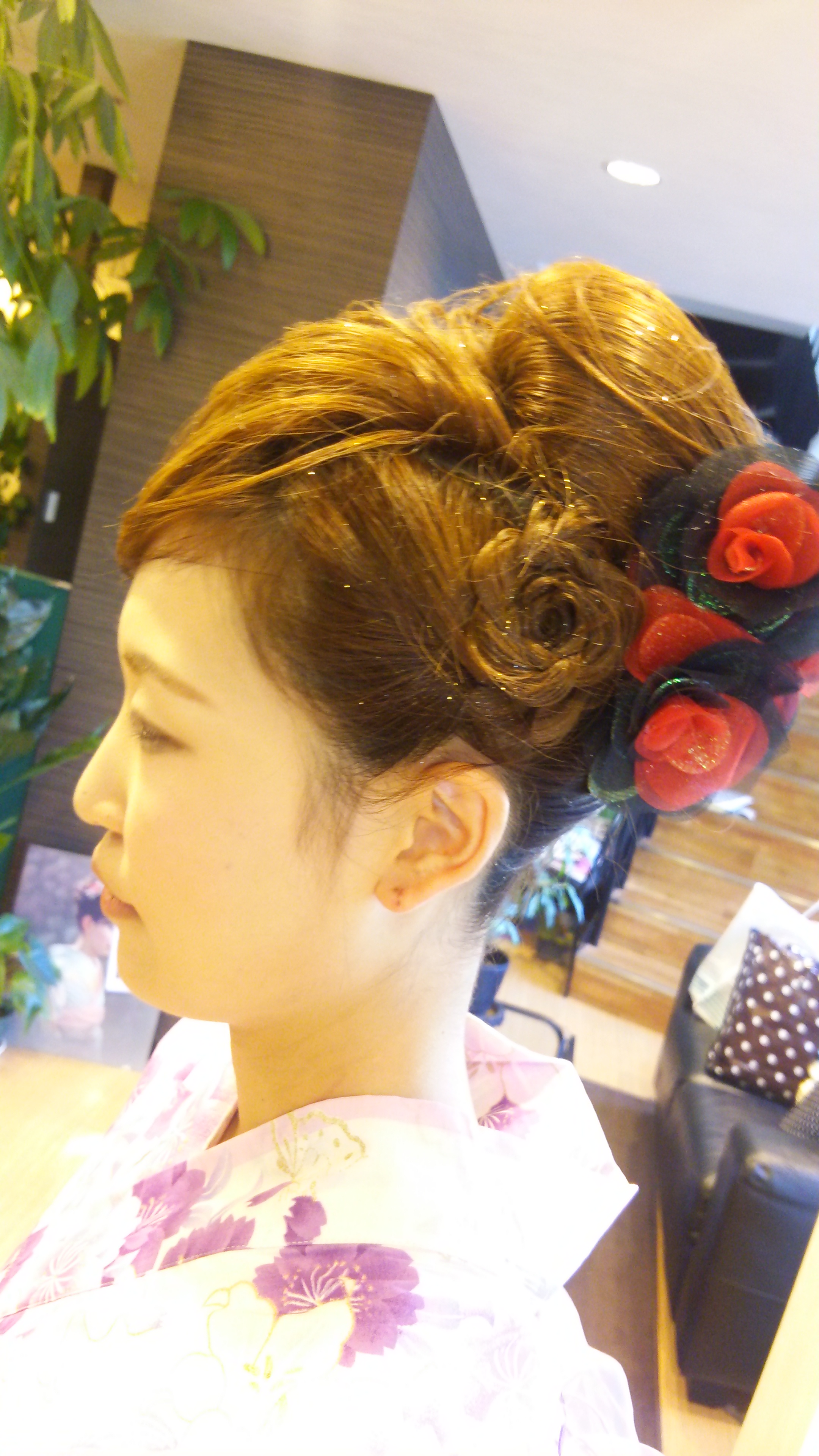 こちらは、昨日のお客様ですね(*´▽`*)ゆるふわ編み込みに浴衣ですね(*´▽`*)続きまして、こちらのお客様(^_-)-☆