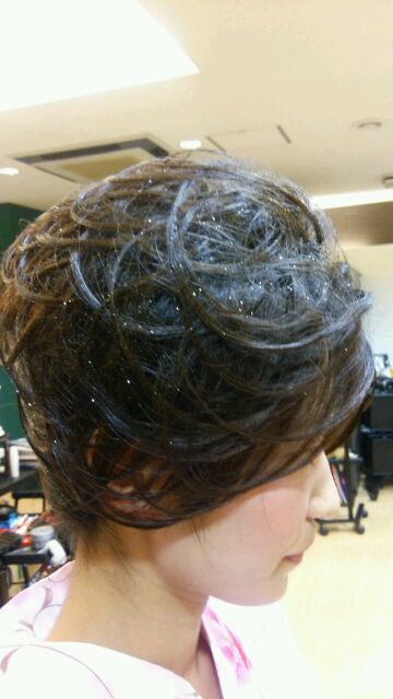 まずはこちらのお客様(*´▽`*)先ほど申し上げた遠くから来ていただいたお客様です(^◇^)髪の長さはあごくらいのボブベースなのですが、何とか上がりました(*´▽`*)