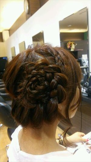 ハイ、店長が大好きな編み込みの花形アレンジです(^◇^)別に浴衣だけじゃなくてフツーに洋服とかにも合いますよ(・ω・)ノ例えば…
