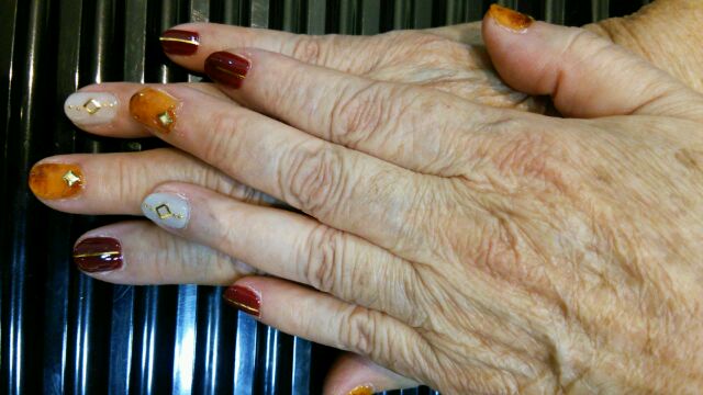 拡大してみましょう!!!(*´▽`*)ご年配の方々は「ネイル」と聞くとかなり敬遠しがちの方が多いですね……(;^ω^)恐らく、若いコ達がよくやってる「スカルプ系」(つまりはつけ爪)のネイルをご想像してる方がほとんどです……(。-`ω-)