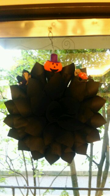 ハロウィン専用「アヤしいリース」!!!( *´艸`)ちなみに手作り!!!(; ・`д・´)大変だった……(;^ω^)