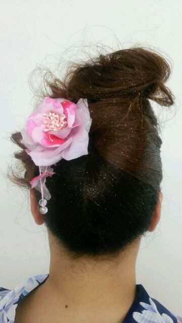 夜会巻きにお花!!!南国な雰囲気!!!(*´▽`*)