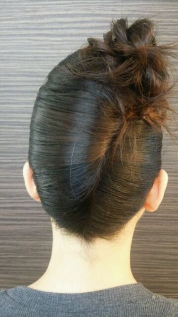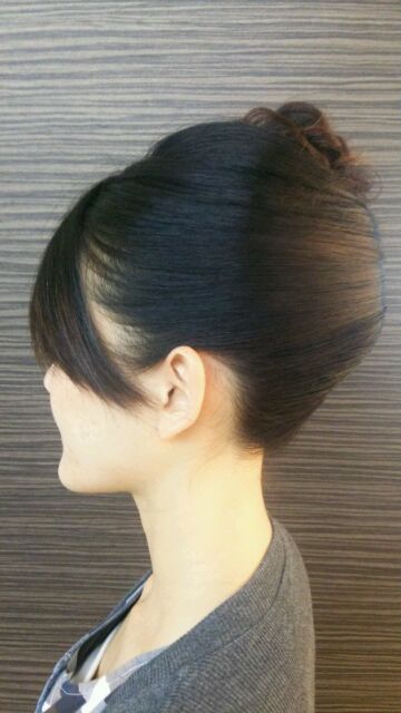 実はこちらのお客様も肩にギリギリつく位のボブベース……(;^ω^)何とか襟足もひねり一束で上げれました(^◇^)