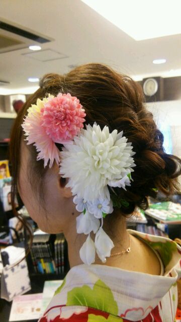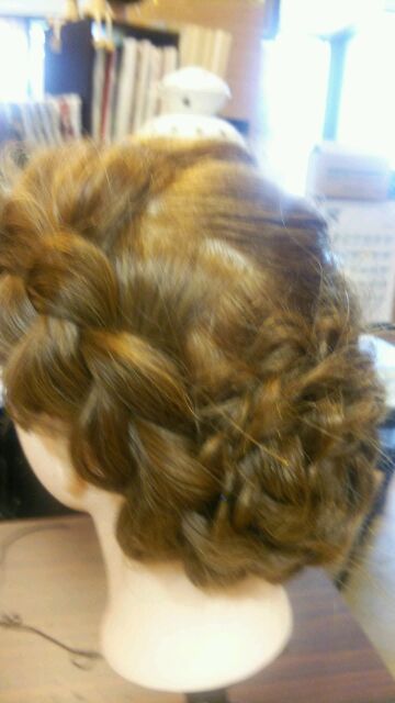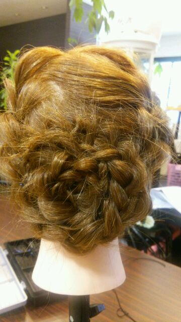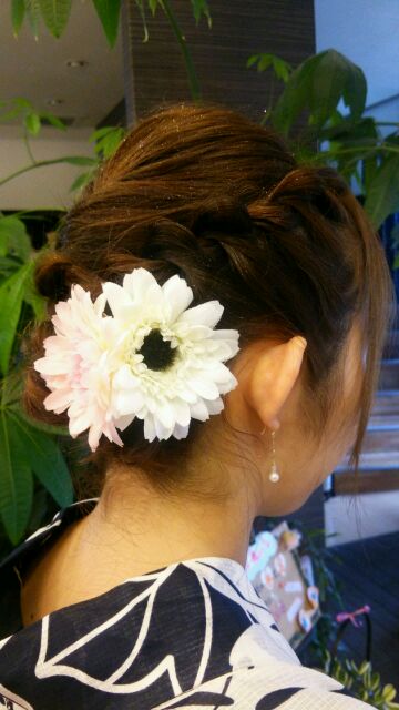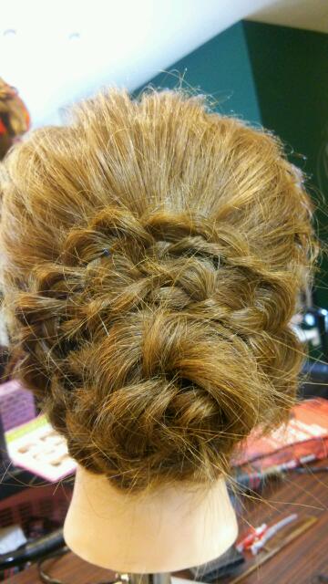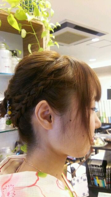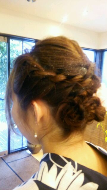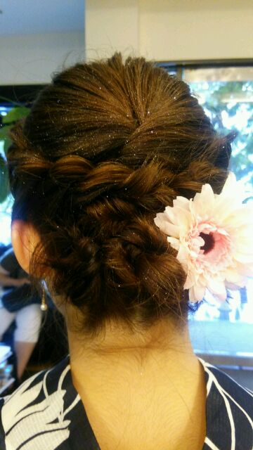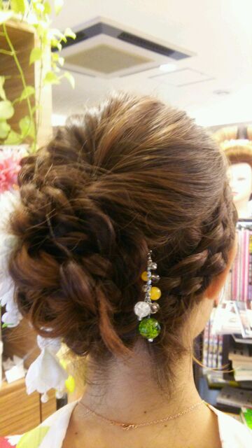 編み込みを総動員して作った感じですね!!!これなら誰ともカブらない!!!(*´▽`*)かんざしも1ポイントあってイイですね(*´▽`*)