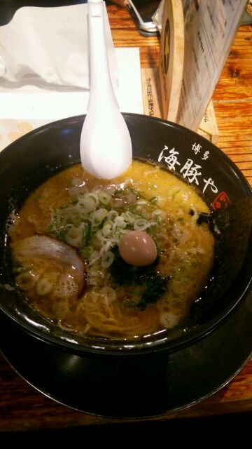 福岡では珍しい、とんこつ醤油ラーメンです!!!東京いた頃の「家系ラーメン」を思い出します……(*´▽`*)