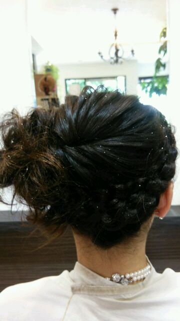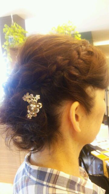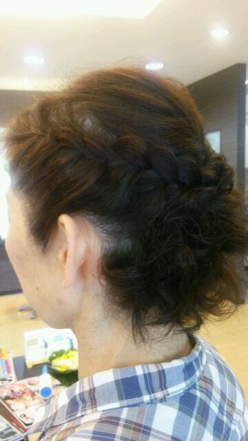 裏5つ編みの部分は5~6回編んでは崩し、編んでは崩し……を繰り返して、ネープにいくにつれて巨大化するように仕込みました!!!(ホントは、久しぶりのサイドアップだったので、店長が調子に乗りまくって、思いっきり手の込んだデザインにしたのが真相……(;^ω^))たまにはこんな感じもいいもんです!!!