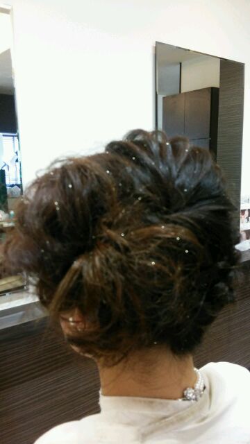 この日はこのタイプのスタイルが大量に出たので、カブらないように作るのが大変……(; ・`д・´)まあ、皆様式場が全然違うトコだったのですが、多少なりとも変化をつけるのが美容師の仕事です!!!(‘◇’)ゞ