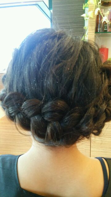 後ろから見た様子(*´▽`*)3つ編みの裏編み込み!!!これも姉妹共通にしてみました(*´▽`*)