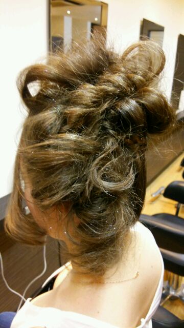 んで、30分ほどかけてアップアレンジ( *´艸`)これからご出勤!!!(*´▽`*)この写真なら、毛先がシルバーアッシュにみえますね!!!(^◇^)