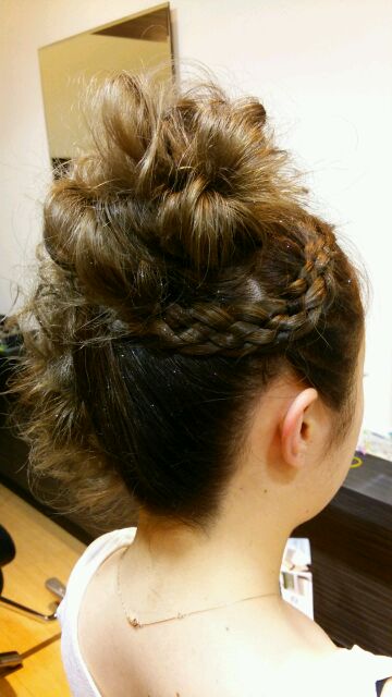それはさておき、今日もヘアアレンジ!!!……と言いましても、忙しい中で手っ取り早くやるには3つ編み込みがラクなんです(;^ω^)それがこちら(^_-)-☆