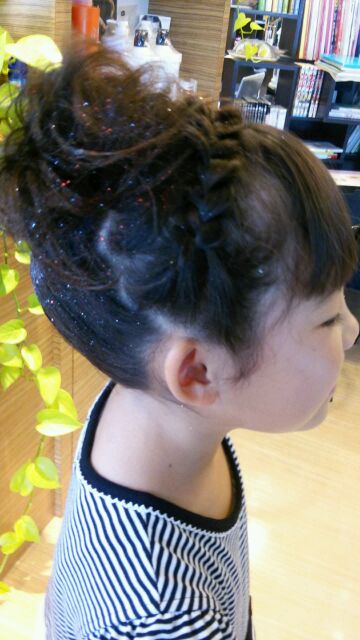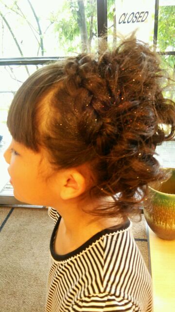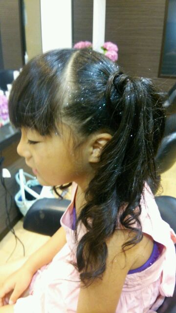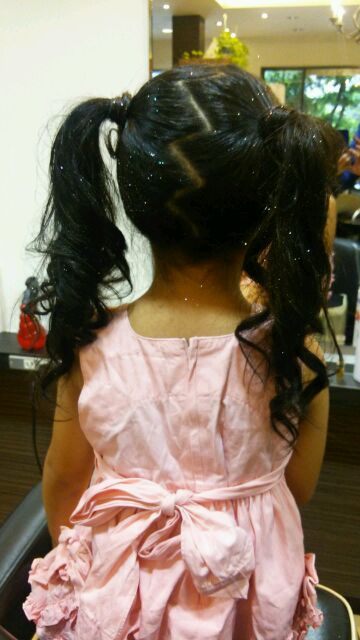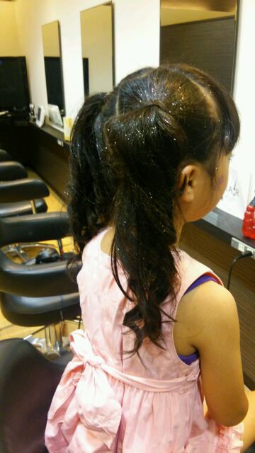 お疲れ様ですm(__)mキャロル美容室ですm(__)m今日はお子様のセット!!!ダンスをされるそうなので、キツめに巻いて欲しいとのこと(^◇^)いいですとも!!!丁度こないだ19mmのアイロンを購入したばっかりだしね!!!( *´艸`)ご希望はツインテールだったので……(・ω・)ノ