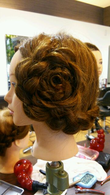 編み込みを使ったお花型アレンジはなかなか難しいみたいですね(*´▽`*;)そこから更に練習!!!そして……(・ω・)ノ