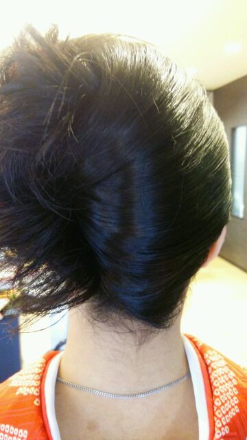 今回は「例のスタイル」ではなく、久々の「夜会巻きスタイル」です(^◇^)