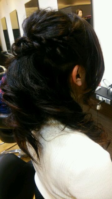 お疲れ様ですm(__)mキャロル美容室ですm(__)m今日は昨日までいじっています「例のスタイル」を和装風にアレンジ(*´▽`*)まずはこちら、全体像から(^_-)-☆