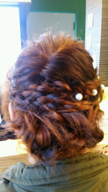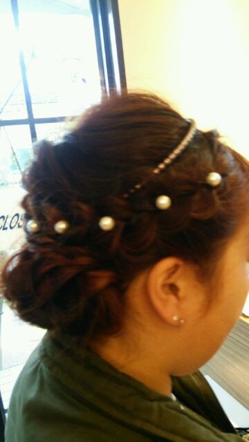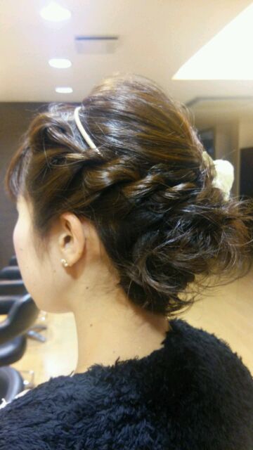 結構、セットでも似たようなスタイルを作ることもありますが、こちらのお客様はもっと簡単に、手早く、(材料費削減でゴム1コにピン数本( *´艸`))、で簡単に作るタイプでした(*´▽`*)…だいたい所要時間は10分かからないくらいでしょうか(*´▽`*)